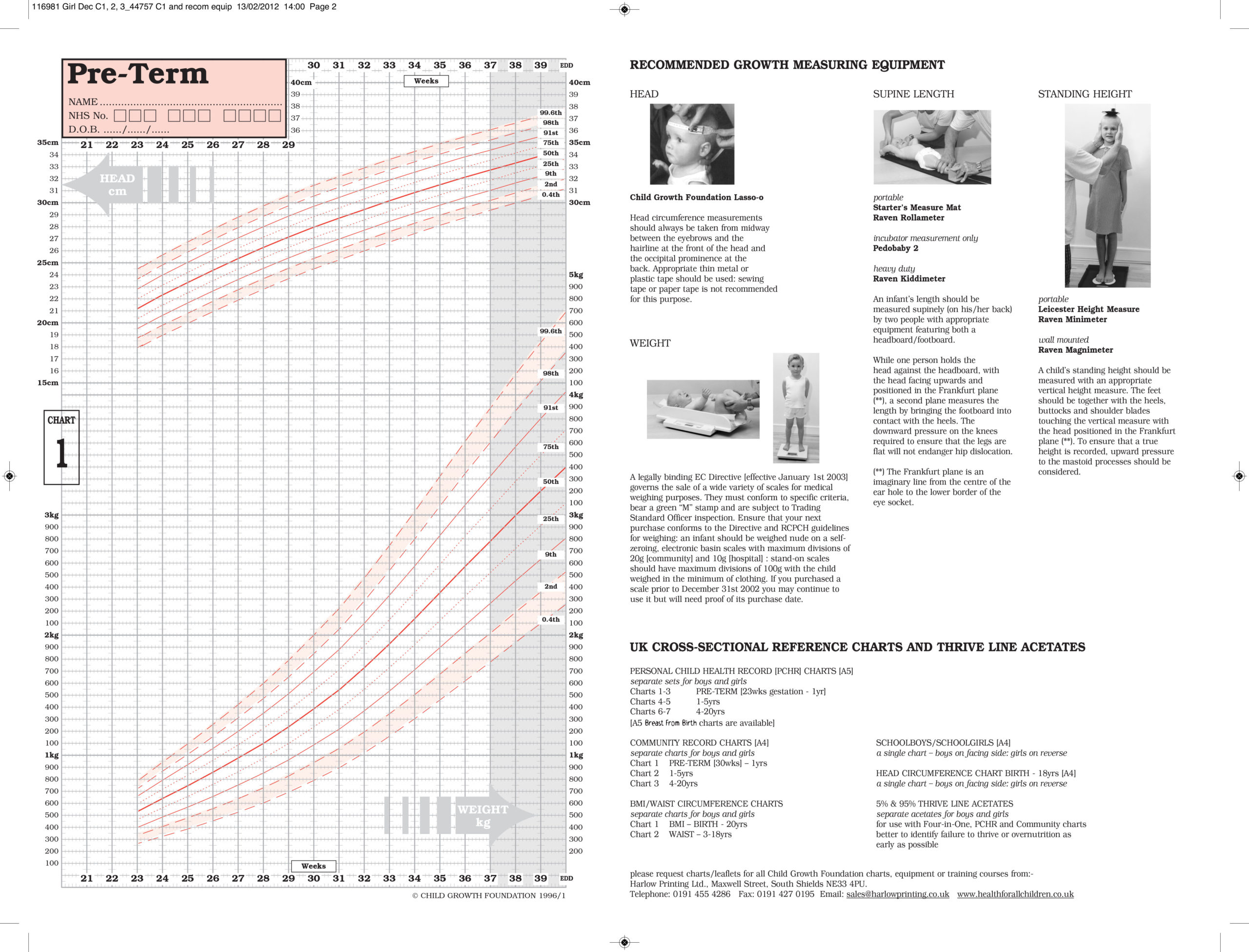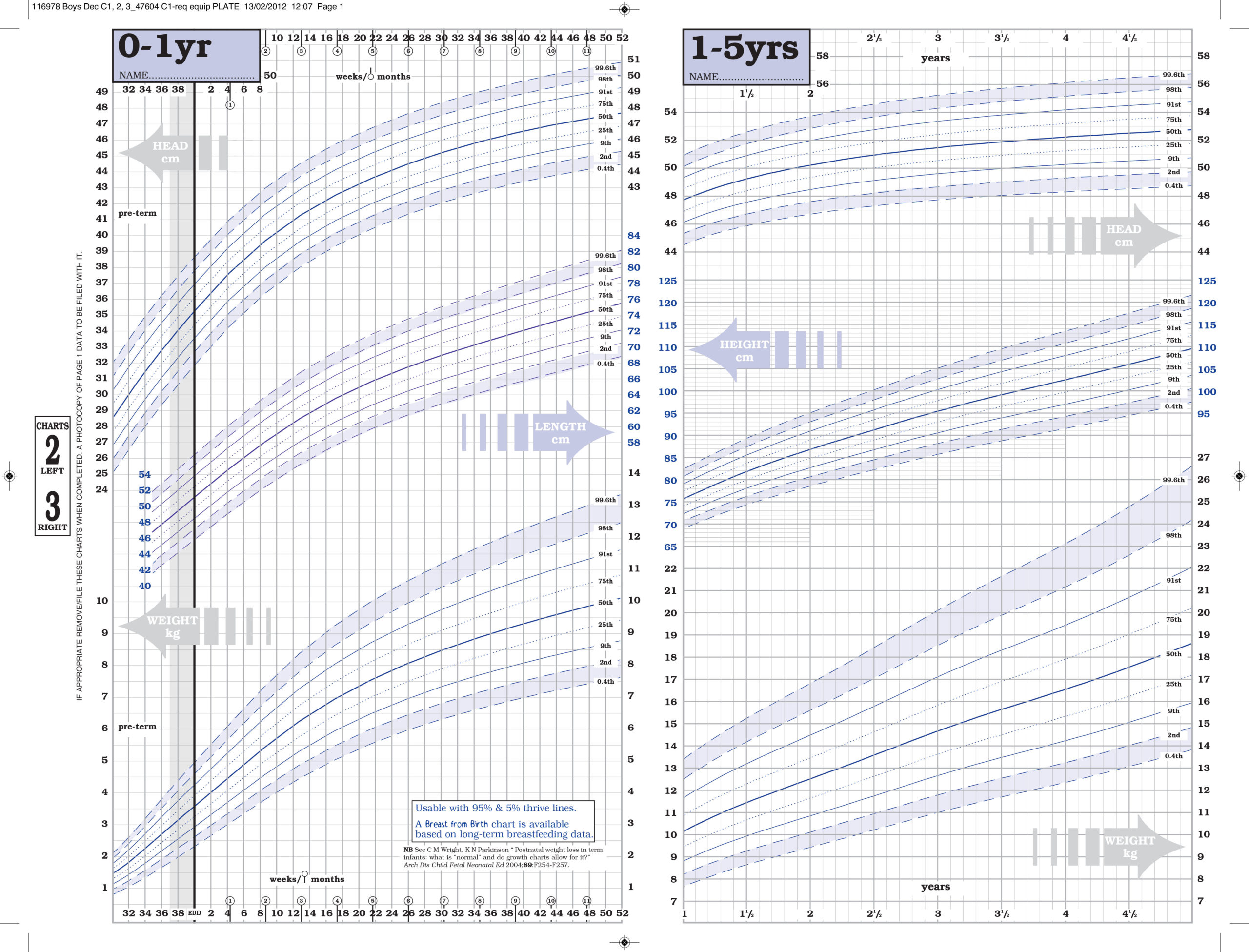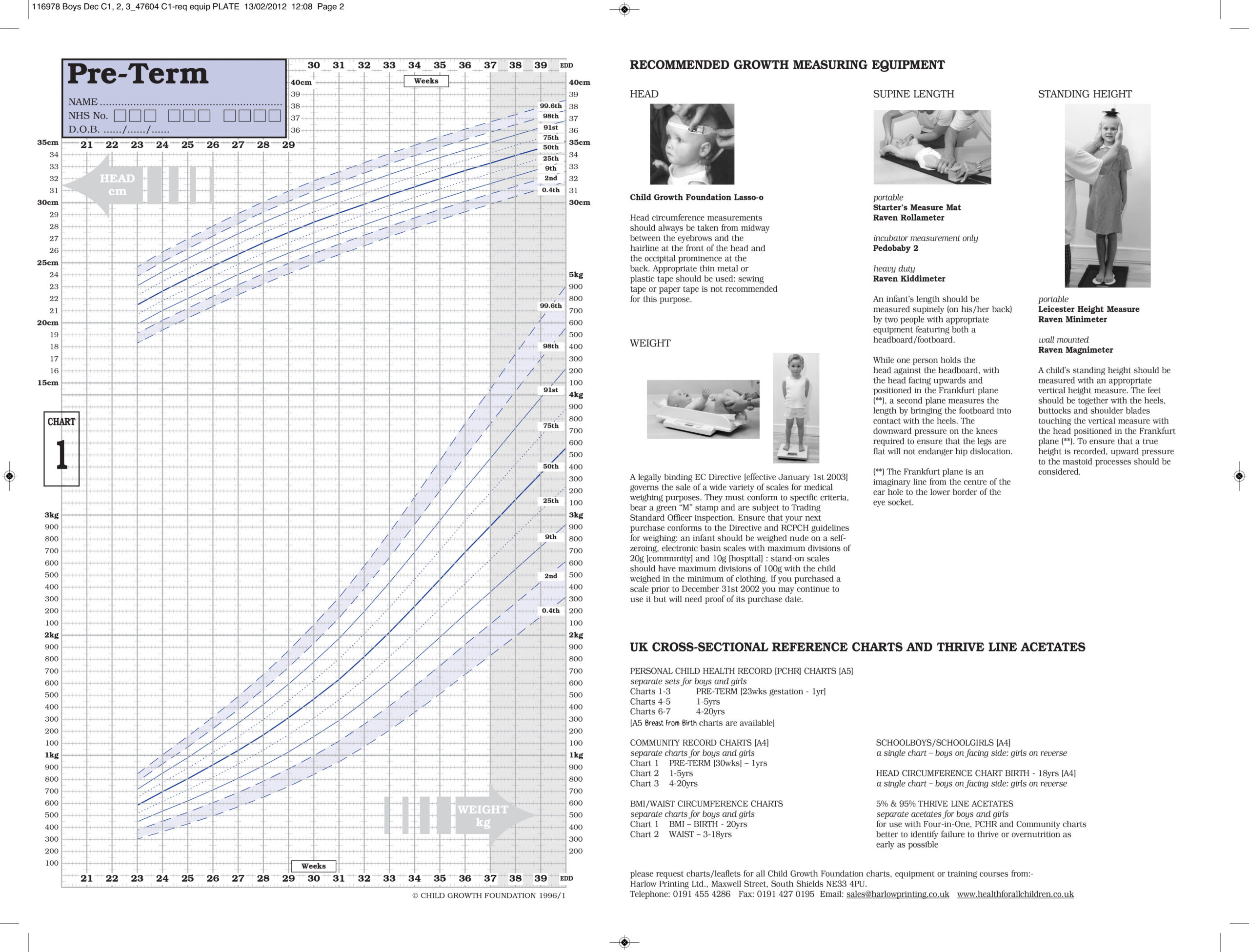 The recommended standard for England and Scotland for Low Birth Weight/ Pre-Term infants is the UK-WHO Lowbirthweight chart. Please note this chart is not availiable in Decimal Format.