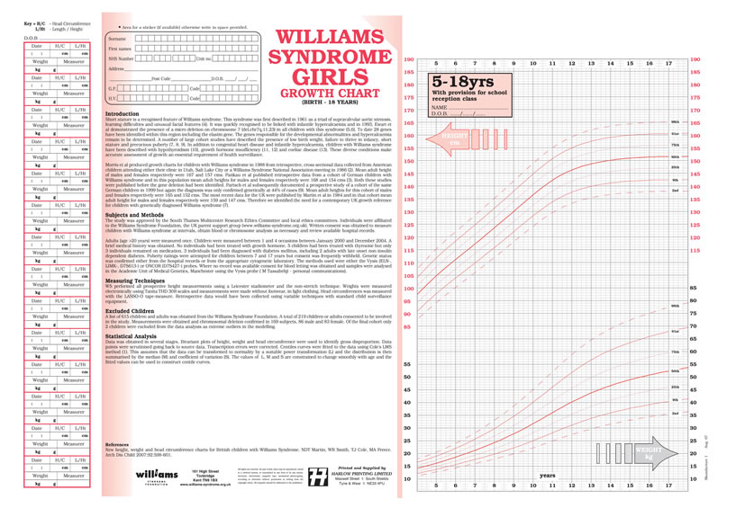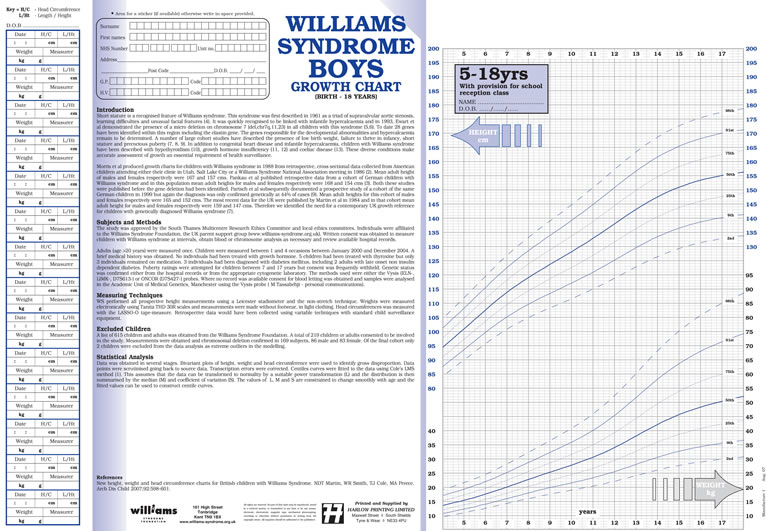 Williams Syndrome Growth Charts devised by the Williams Syndrome Foundation and Harlow Printing.